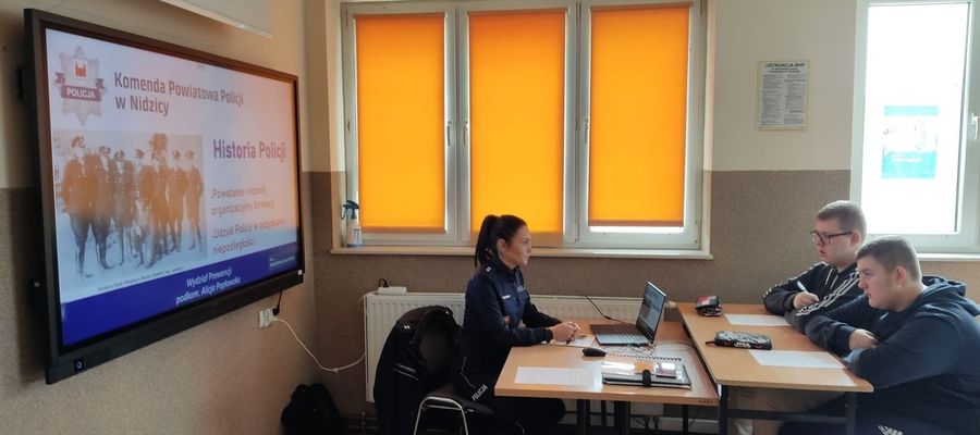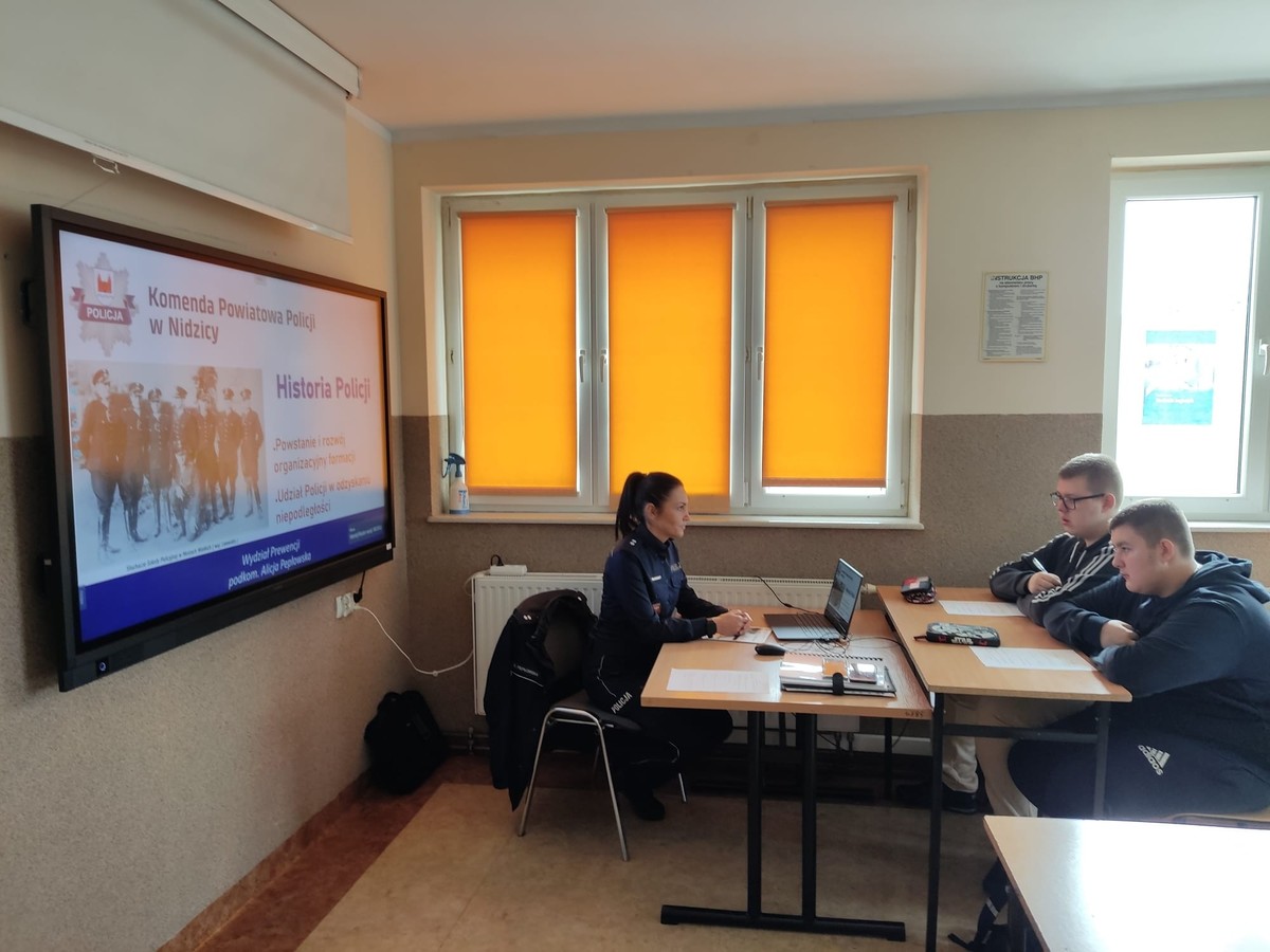 Pierwsze lekcje już się odbyły. Policjantka prowadząca zajęcia przybliżyła uczniom historię i rozwój Policji oraz jej udział w odzyskaniu przez Polskę niepodległości.