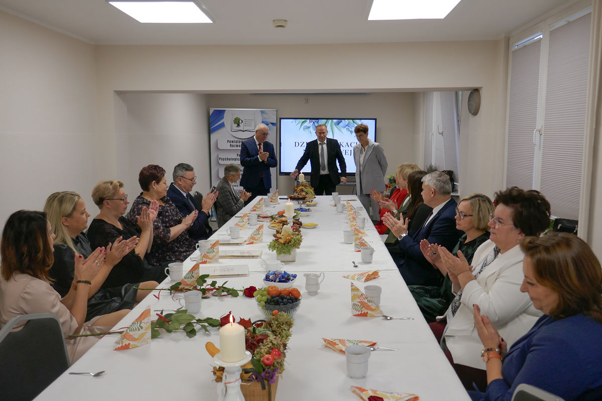 W sali konferencyjnej Powiatowego Centrum Rozwoju Edukacji w Nowym Mieście Lubawskim 14 października 2025 roku spotkali się dyrektorzy i nauczyciele, by wspólnie uczcić Dzień Edukacji Narodowej.