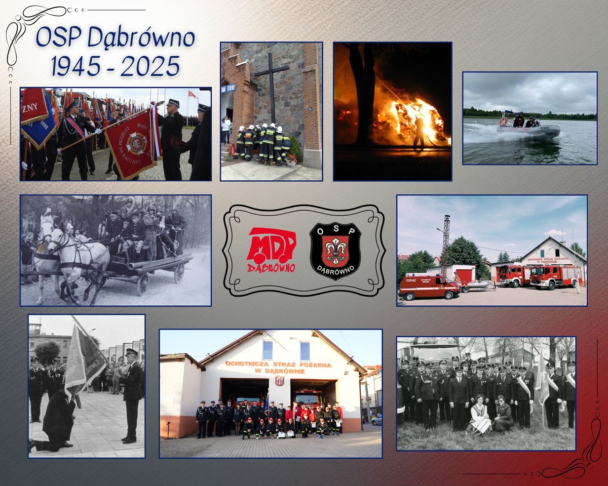 W ciągu 80 lat OSP Dąbrówno przeszła ogromną przemianę – od ręcznych sikawek po nowoczesny sprzęt ratowniczy. Z małej grupy zapaleńców powstała jednostka, która dziś jest pewnym filarem bezpieczeństwa naszej gminy.